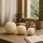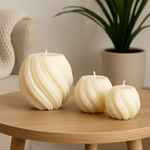 Contenu du lot : 3 bougies moulées (formes variées : torsadée, bulle, vague, etc.)